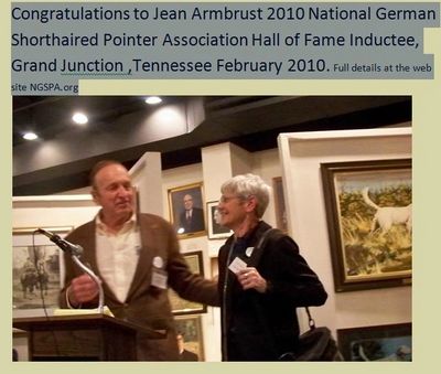 Jean Armbrust 2010 National German Shorthaired Pointer Assiciation Hall of Fame Inductee
